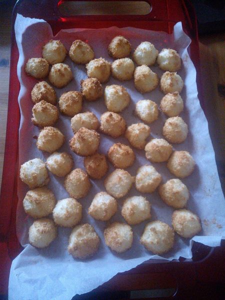 Bon Rochers coco. C'est une bonne idée pour utiliser des restes de blancs d'œufs.