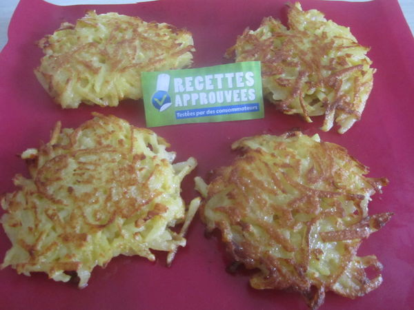 Bonne tenue à la cuisson, j'avais râpé les pommes de terre très fin pour avoir de belles galettes, par contre j'ai eu un problème de démoulage: ils ont accroché à l'emporte pièce, dommage. La prochaine fois je mettrai de l'huile sur l'intérieur. Bon goût et très simple à faire, merci beaucoup pour cette recette !