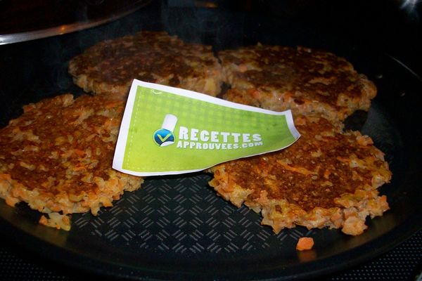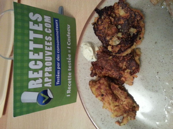 Cela change des beignets de patates traditionnels, le curry et les carottes donnent un bon petit goût. Mes röstis ne se sont pas décomposés pendant la cuisson.