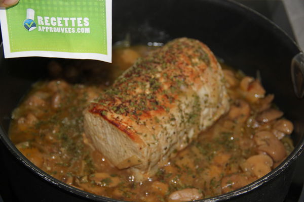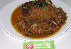 Un rôti moelleux accompagné de ses champignons et d'un bon jus de cuisson.
