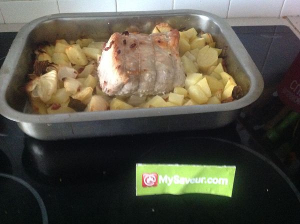 Super recette, les pommes de terre sont fondantes, le porc parfaitement bien cuit sans être sec. Vin blanc, lardons, oignons, ail et laurier apportent juste ce qu'il faut de saveurs sans prendre le dessus.