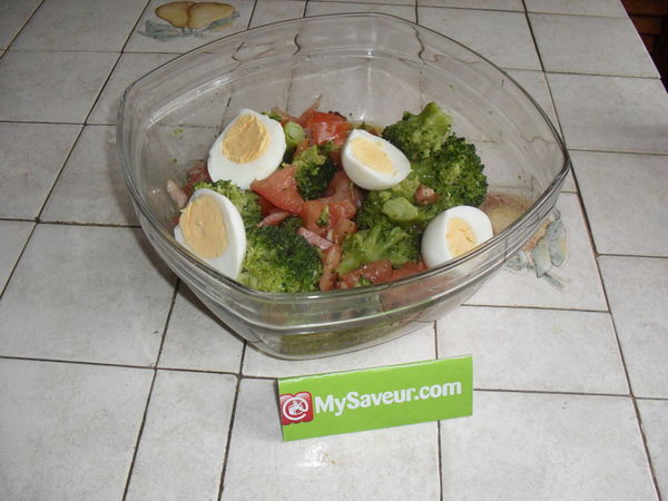Ça change comme salade, originale avec le brocoli et en plus c'est bon pour la santé. Il y a un bon équilibre entre les lardons, la tomate et les oeufs. Je referai cette recette.