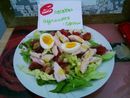 Une bonne salade pour un repas du soir ou de forte chaleur. Je fais à peu près la même, mais je rajoute des dès d'emmental et des croûtons.