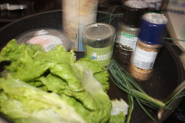 Une fois le fromage fondu et la salade cuite, assaisonner avec de la semoule d'ail, de la ciboulette ciselée, sel et poivre.