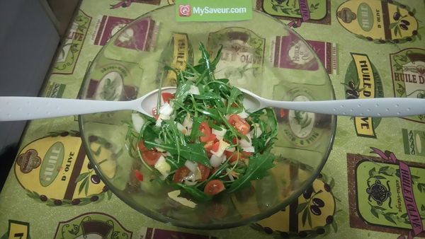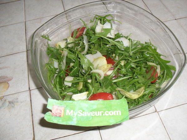 Une très bonne salade qui plait bien mais il n'y avait pas assez de vinaigrette, j'en ai fait plus. On aurait aussi pu y ajouter de la mozzarella.