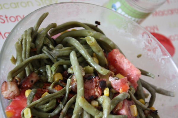 C'est doux et frais, cela nous a fait beaucoup de bien surtout après une après midi gâteau. Et en même temps une bonne découverte car j'ai pas l'habitude de faire les haricots vert en salade.