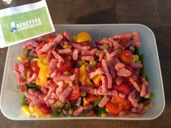 Le petit goût du poivron relève bien la salade. Peut être un peu plus de maïs la prochaine fois pour la couleur.
