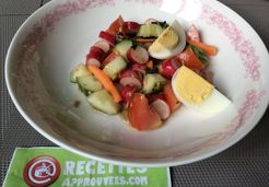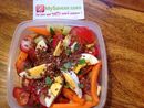 Salade de crudités simple et rapide, mais j'ai trouvé qu'elle manquait de peps et pas trouvé d'intérêt d'ajouter des graines de lin.