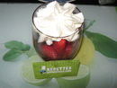 Dessert léger, frais avec un joli visuel. La noix de coco parfume délicatement la chantilly. J'utiliserai aussi cette crème sur des desserts à base de chocolat (crème,glace,gateau..).