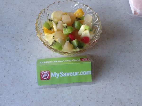 Un bon mélange pour une salade de fruits, petit plus avec la vanille qui parfume le sirop, et j'ai rajouté une banane.