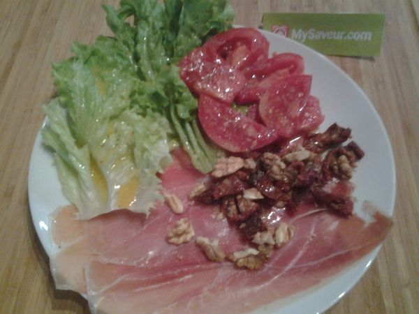 Nous n'avons pas aimé la vinaigrette, j'ai mis les noix à part car tout le monde n'aime pas.