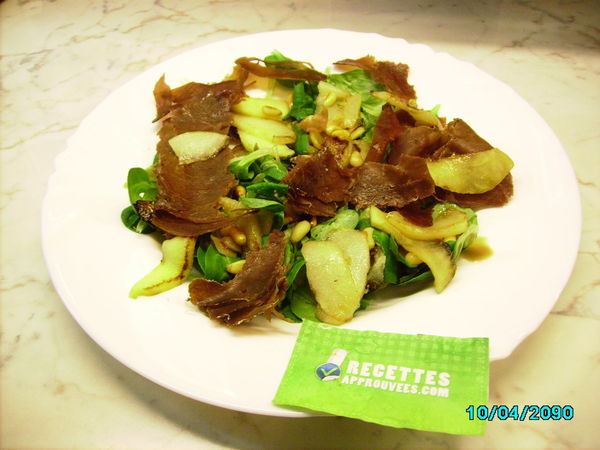 Trop bon ce mélange de fruits avec la salade !!! L'asaisonnement est bon !!!!! A manger frais, ça passe tout seul.