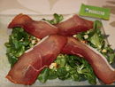 Très bonnes associations salées-sucrées (attention, le jambon est très salé). J'ai choisi des pousses d'épinards. La sauce finale est onctueuse et originale. Par contre, il manque le dosage de la moutarde. J'en ai mis une CS.
