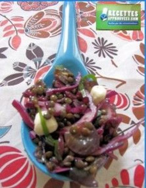 C'est une recette de lentilles gourmande ! Je n'ai pas trouvé de lardons, j'ai donc utilisé des magrets de canard fumés. La vinaigrette à la moutarde relève bien les lentilles.