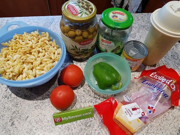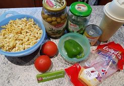 Mélanger l'ensemble des ingrédients aux pâtes. Bien mélanger.