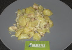 Recette simple et rapide à préparer. J'ai cuit mes pommes de terre à la vapeur au micro-ondes et j'ai utilisé de l'oignon rouge. C'est bon mais il est vrai que c'est un peu sec. Nous avons rajouté un peu de vinaigrette pour finir la salade.