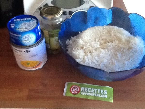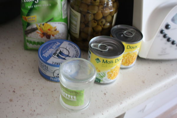 Une recette simplissime que je fais souvent, mais que j'agrémente au gré de mes envies, d'olives noires, cornichons, tomates séchées, ou oeufs durs.