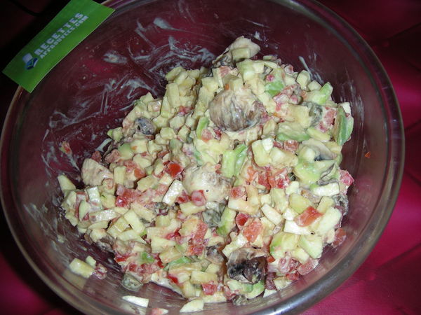 Une bonne salade légère et bien croquante. L’utilisation des courgettes est une bonne idée qui change, elles se marient bien avec la sauce et les cornichons. Il lui manque un petit quelque chose pour lui donner un peu de caractère, peut –être quelques épices, un peu d’ail,…