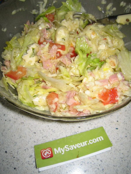 C'est une bonne salade, pleine de fraîcheur. Nous avons aimé l'association des aliments et la présence du fromage pour le côté gourmand. Une recette simple mais très bonne.