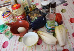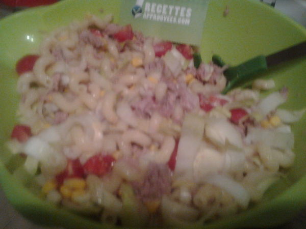 Très bonne salade de pâtes bien complète (je n'ai pas mis les œufs). La sauce est très "moutardée", un peu trop peut-être mais l'ensemble s'accorde bien. Les tomates et le maïs apportent de la fraîcheur et la présence des endives relève le goût du thon. J'aurais mis un peu de citron à la place de la moitié de la moutarde. Recette facile à faire par contre j'ai eu du mal avec les explications entre parenthèses (ingrédients facultatifs ?). À refaire. Merci.