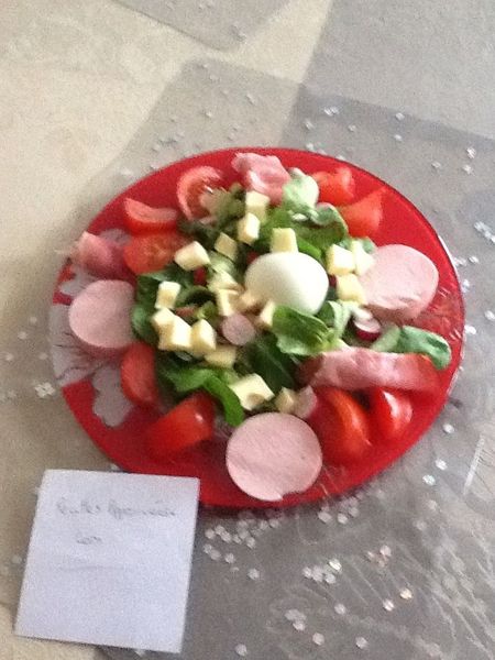 Bonne salade, j'ai bien aimé le croquant de radis, le jambon fumé donne du goût, elle et bien complète avec en plus du fromage et de la charcuterie