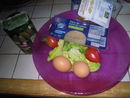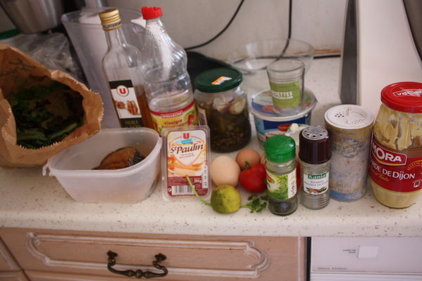 - Sauce : 100g de crème fraîche ou fromage blanc, jus d'1/2 citron (ou plus), 2 càs d'huile de votre choix, 2 càs de vinaigre, 1 càc de moutarde, poivre, (persil), (aneth).