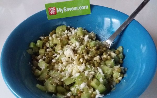 Une salade vraiment très originale et très agréable à déguster. Les ingrédients sont bien dosés et font un joli mariage. Pour la compléter parfaitement, je lui aurais volontiers ajouté quelques feuilles de menthe fraîches.