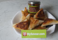 Couper les feuilles de brick en deux, les garnir et les plier en forme de samoussas.