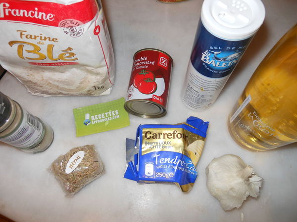 - Sel, poivre, (épices), 1 càs de thym, 1 gousse d'ail