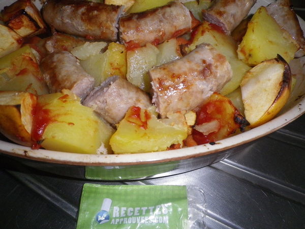 Bonne recette, j'ai fait avec des pommes de terre normal et de la saucisse de montbéliard, on a tous aimé par contre je pense que la prochaine fois je prendrai des merguez pour apporter un peu de piquant !
