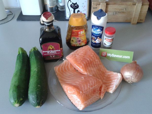 Le vinaigre domine trop sur le miel, j'aurais préféré davantage de douceur/de sucré : là c'était un peu amer. Les courgettes manquent de cuisson. Par contre, la cuisson du saumon est top, il n'est pas sec du tout et reste bien moelleux !