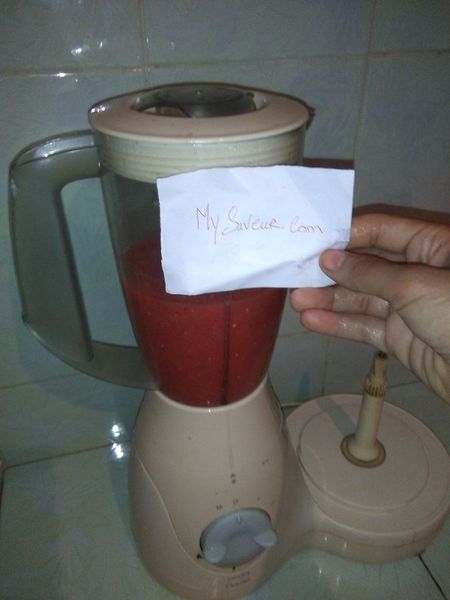 J'ai bien aimé l'association des fraises et des oranges. Cela donne un jus bien frais et vitaminé pour démarrer la journée ! La prochaine fois, j'ajouterai quelques feuilles de menthe pour plus de pep's...