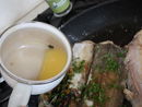 A lire la recette, nous pourrions penser que la sole est cuite avec la peau. Or, comme le montre la photo, il n’en est rien. J’ai en conséquence, réalisé la recette en ayant en premier lieu retiré la peau de la sole. C’est mieux si l’on veut que les arômes s’imprègnent bien dans la sole lors de sa cuisson.
