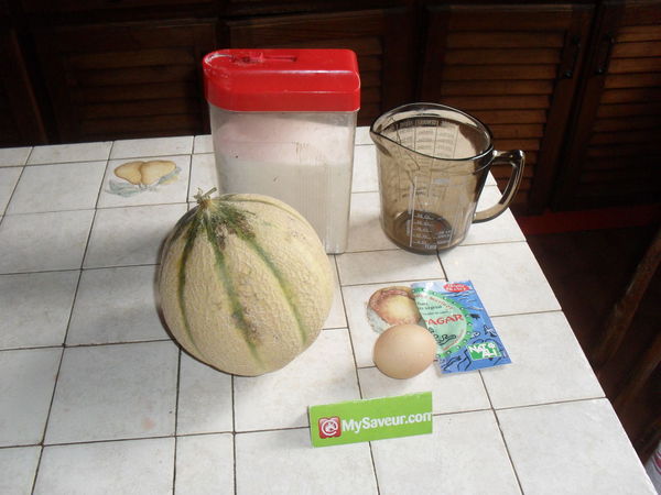 C'est un sorbet que j'ai l'habitude de faire, mais sans eau et sans agar-agar, simplement le sucre mixé avec le melon congelé, puis le blanc d'œuf, je ne vois pas la différence de texture.