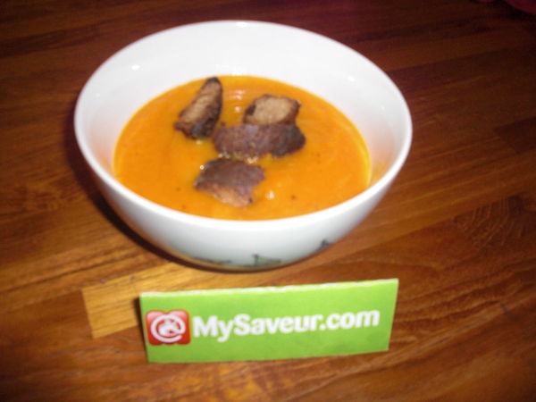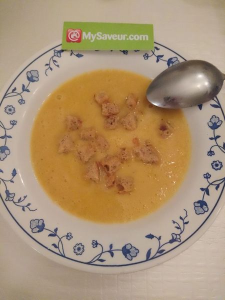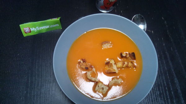 Une bonne soupe de carottes. Je rajouterais juste un peu plus d'épices. Les croûtons sont bons.