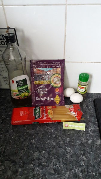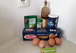 Plat de pâtes simple et rapide à préparer. C'est bien crémeux avec le jaune d'oeuf et le parmesan.