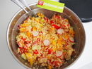 Recette classique de taboulé mais avec les radis en plus et ça apporte un peu de croquant. Pour ma part, je rajoute de la menthe fraîche.