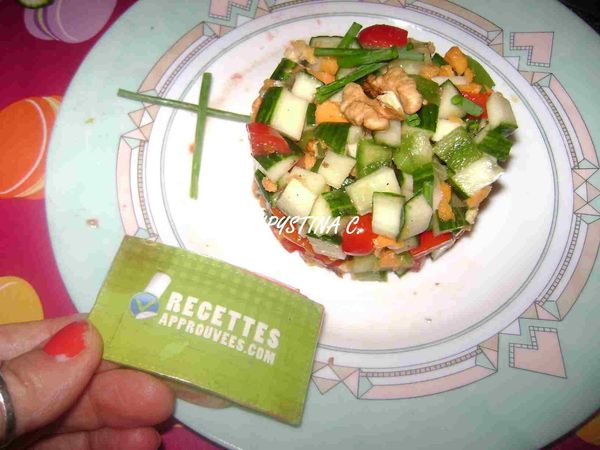 Un délicieux mélange frais et croquant que nous avons beaucoup apprécié. Le mariage des ingrédients est vraiment très réussi. Le poivron est un vrai plus qui apporte beaucoup de saveur. Je referai la recette sans aucun doute ! Nous nous sommes régalés. Merci !