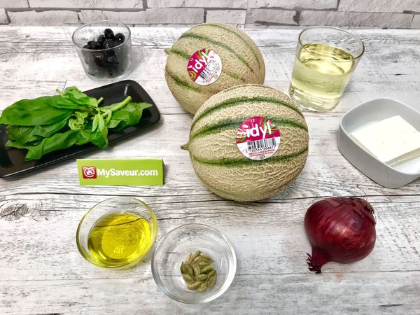 Pour la préparation du tartare : couper les olives et la feta en petits dés. Éplucher l'oignon et le ciseler. Couper le melon en deux, l'éplucher et tailler des dés de la même taille que la feta.Ciseler le basilic. Dans un saladier, mélanger tous ces éléments et réserver au frais.