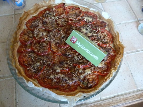 Je trouve que la base est bonne mais il manque du thon (au autre chose) sous les tomates. La tarte est fade en aliments (pas en goût car il y a le basilic et la moutarde). Je trouve que cette tarte n'est pas aboutie. Dommage, car cela fait qu'elle est assez acide.
