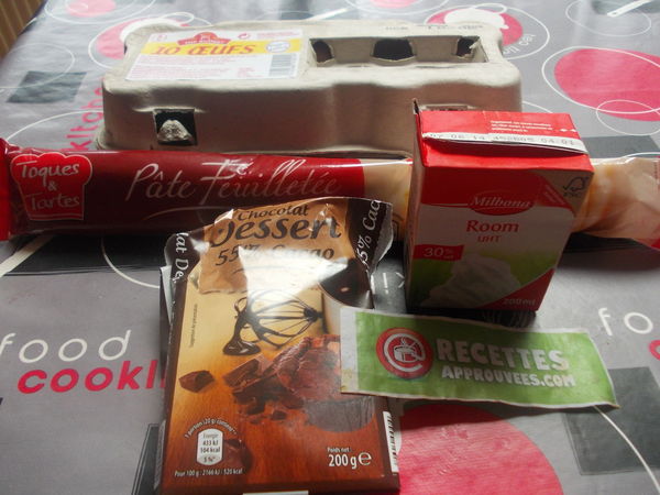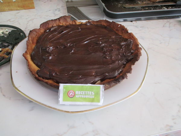 Beaucoup de chocolat (revoir le dosage) et je trouve dommage, mais ça reste perso, j'ai pris une pâte feuilletée, cuite à blanc ! Et lorsque l'on déguste la tarte, la pâte a "bu" le chocolat et devient molle !! Je pense qu'il faut une pâte brisée !!