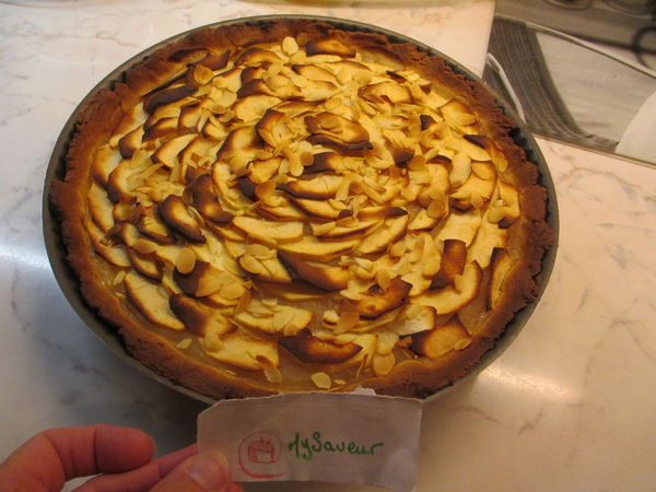 La tarte était légère avec l'apport de la compote (faite maison). Les amandes effilées amènent du croquant. L'ensemble n'était pas trop sucré juste ce qu'il fallait.