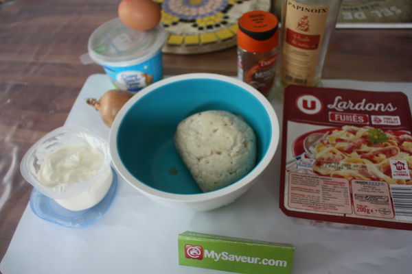 Un mélange d'ingrédients qui reste un classique pour faire des flamms, la quantité de garniture est vraiment insuffisante pour 450 gr de pâte, je ne vois pas utile de mettre de l'huile dans la garniture, les lardons ont lâché énormément de gras.