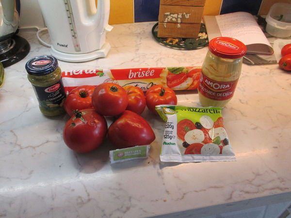 Assez bonne tarte (l'alliance moutarde, tomates, pistou fonctionne bien), mais mon fond de tarte a été détrempée par les tomates, dommage !