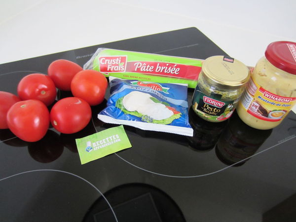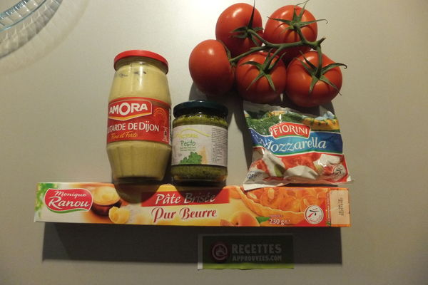 Recette très simple à faire. Nous avons simplement adoré cette tarte. L'association est parfaite entre les tomates, la mozzarella et le pesto. Très bonne recette merci.