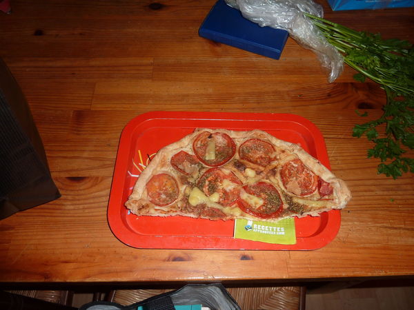 On a décongelé une pâte brisée (recette dans RA). Dommage que les tomates aient rendues trop de jus.