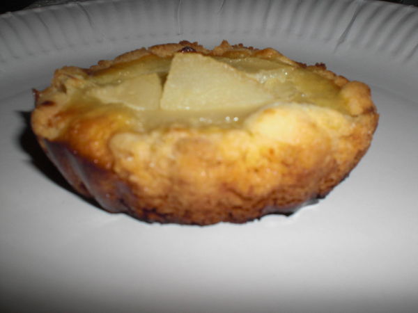 Réalisée en version tartelettes sur un fond de pâte sablée : le goût est bon, mais l'on sent davantage l'oeuf que l'amande. Donc, il ne faudrait pas hésiter à augmenter la quantité à mon avis.