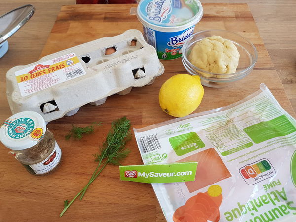 Dans une jatte, battre les œufs, ajouter la crème, l'aneth, le piment et les zestes de citron.