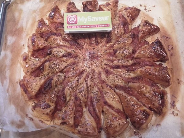 La tarte soleil est une belle invention. Très pratique lorsqu'on la sert lors d'un apéro car chaque invité tire sur une branche pour avoir sa part. Le mélange des ingrédients est parfait et plaît à tout le monde.