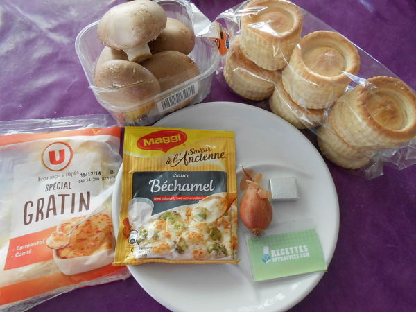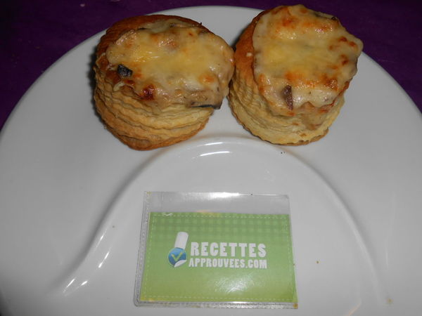 J'avais fait 1/2L de béchamel, ça faisait un peu trop. J'ai utilisé des champignons surgelés, j'aurais dû les faire revenir plus longtemps. Et enfin, j'ai laissé les vol au vent 10min au four. Résultat très goûteux, ça change de ma recette habituelle au veau et olives. Très rapide à faire.